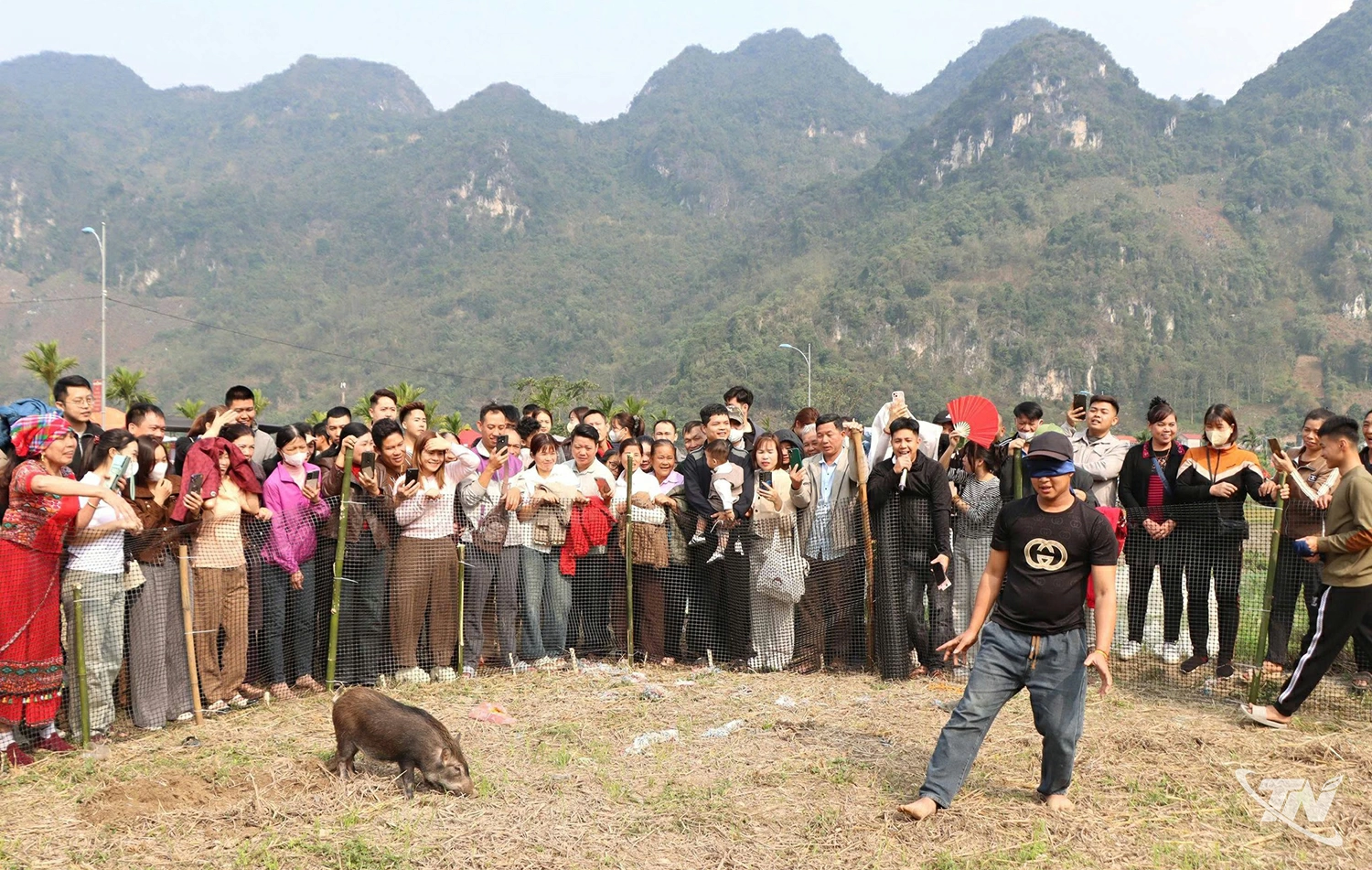 Du khách chơi trò chơi dân gian tại Lễ hội truyền thống đình Mỏ Gà (xã Võ Nhai)